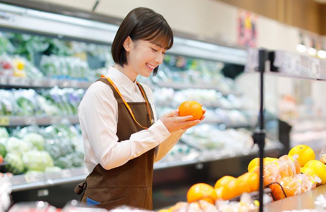 青果スタッフのお仕事内容は、商品の品出し、果物や野菜のカット作業、袋詰めやラップ包装、清掃業務などです。
