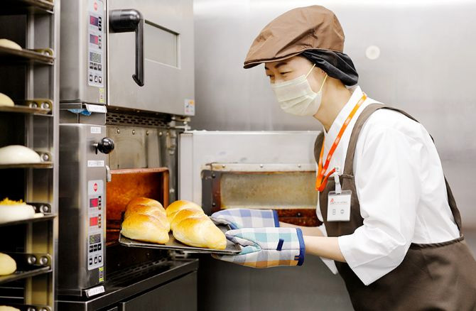 主な仕事内容は、パンの発酵・加工・焼きの作業、袋詰め、陳列です。